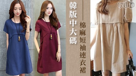 商品訊息簡述: 平均每件最低只要289元起(含運)即可購得韓版中大碼棉麻短袖連衣裙任選1件/2件/4件,2款多色多尺寸任選?